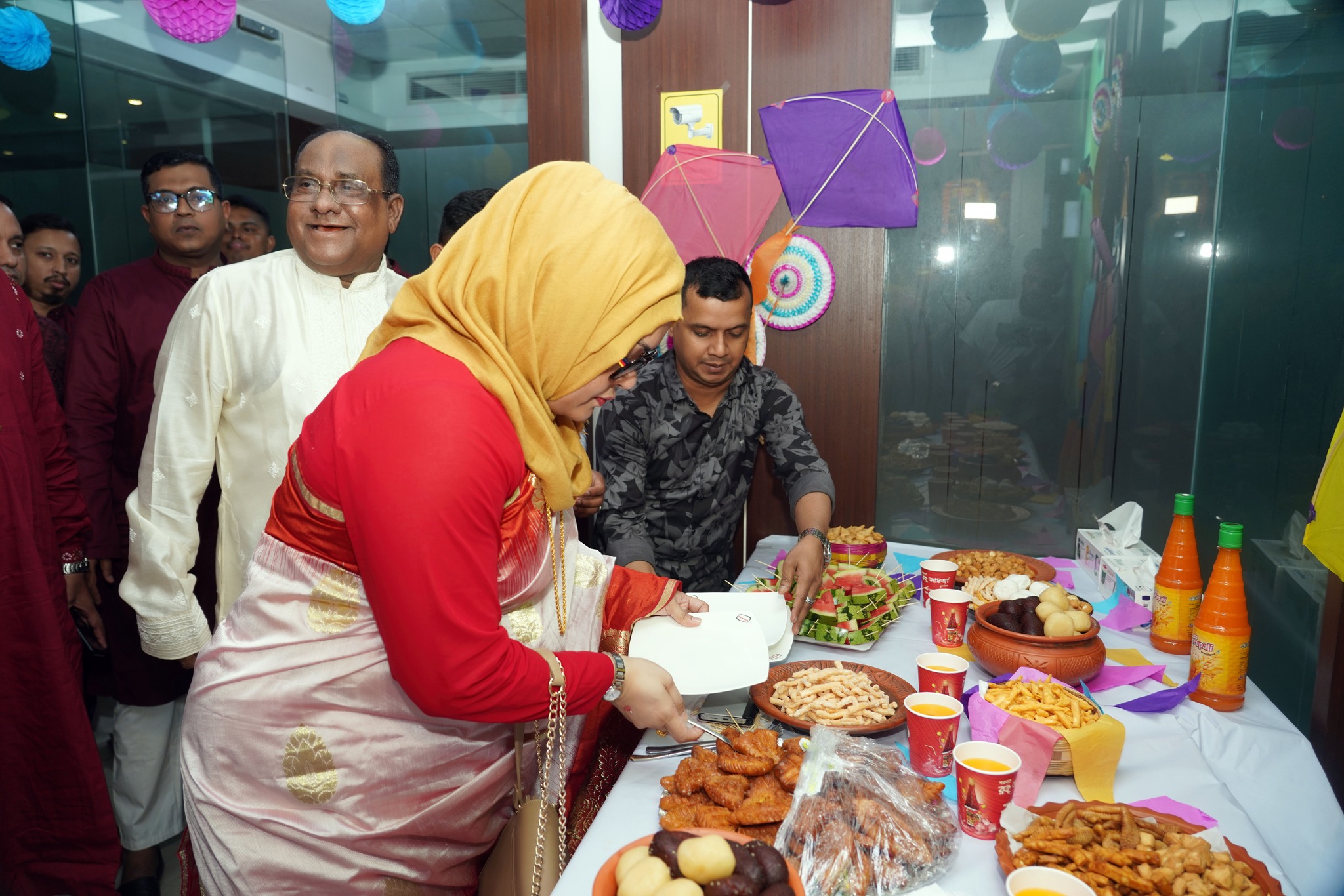 পহেলা বৈশাখ উপলক্ষে রাজধানীর বাংলামোটরে প্রতিষ্ঠানের প্রধান কার্যালয়ে ছিলো বর্ণাঢ্য আয়োজন। ঐতিহ্যবাহী পিঠা পুলি পায়েশ পান্তা-মাছ আর ভর্তা-ভাতের আয়োজন করা হয়। এ সময় হামদর্দ এর চিফ মোতাওয়াল্লী ও ব্যবস্থাপনা পরিচালক ড.হাকীম মো.ইউছুফ হারুন ভূঁইয়া এবং সিনিয়র ডিরেক্টর মার্কেটিং অ্যান্ড সেলস্, প্ল্যানিং অ্যান্ড ডেভেলপমেন্ট অধ্যাপক কামরুন নাহার হারুনকে ফুলেল শুভেচ্ছা জানান পরিচালকবৃন্দ। ড.হাকীম মো.ইউছুফ হারুন ভূঁইয়া বলেন, ঐতিহ্যকে ভুলে গেলে চলবেনা। দেশীয় সংস্কৃতি চর্চার মধ্য দিয়েই মানবিক মানুষ হিসেবে নিজেদেরকে প্রতিষ্ঠা করতে হবে। পাশে দাঁড়াতে হবে নিরন্ন মানুষের। হামদর্দ সেই কাজটিই কয়েক যুগ ধরে নিরন্তরভাবে করে যাচ্ছে।